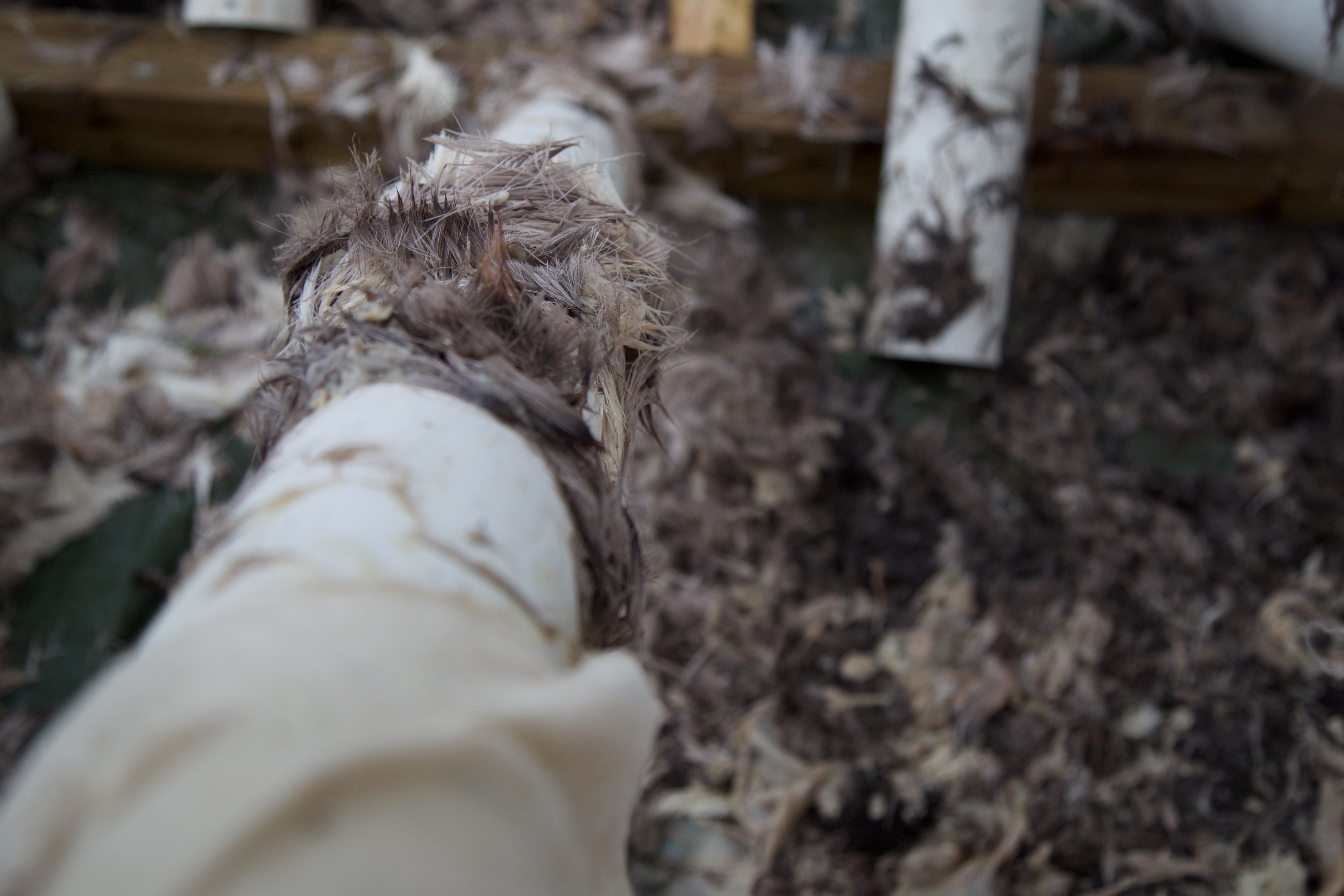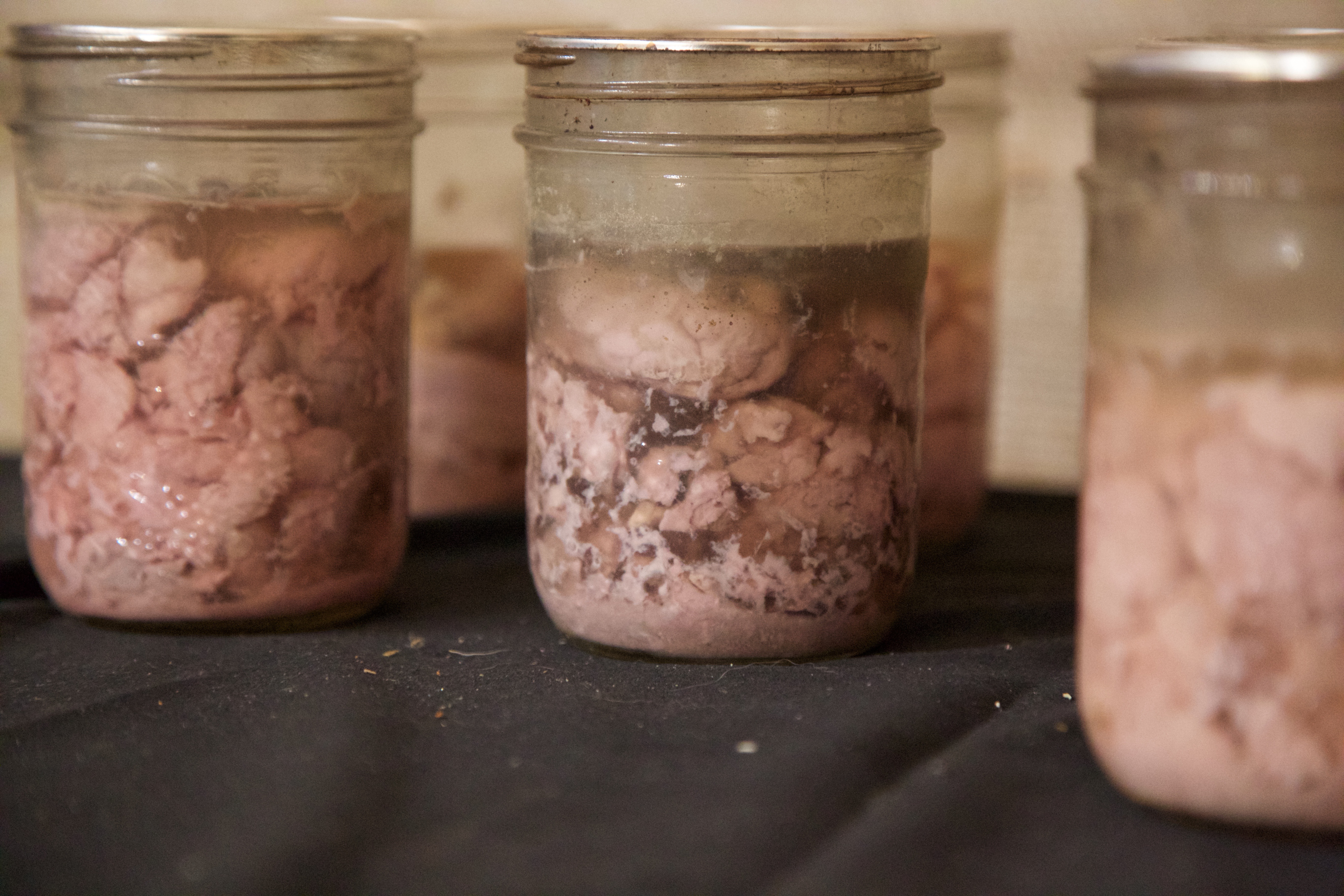 Two teens sit side by side in a rural cabin in Aldergrove, just outside of Vancouver. They reach elbow deep into separate buckets, rubbing the oily emulsion of brains into their raw deer-hides.