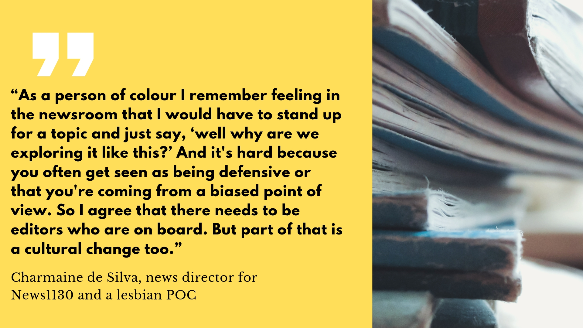 Balkissoon said there are no easy solutions for the problems of diversity, representation, and inclusion in Canadian media.