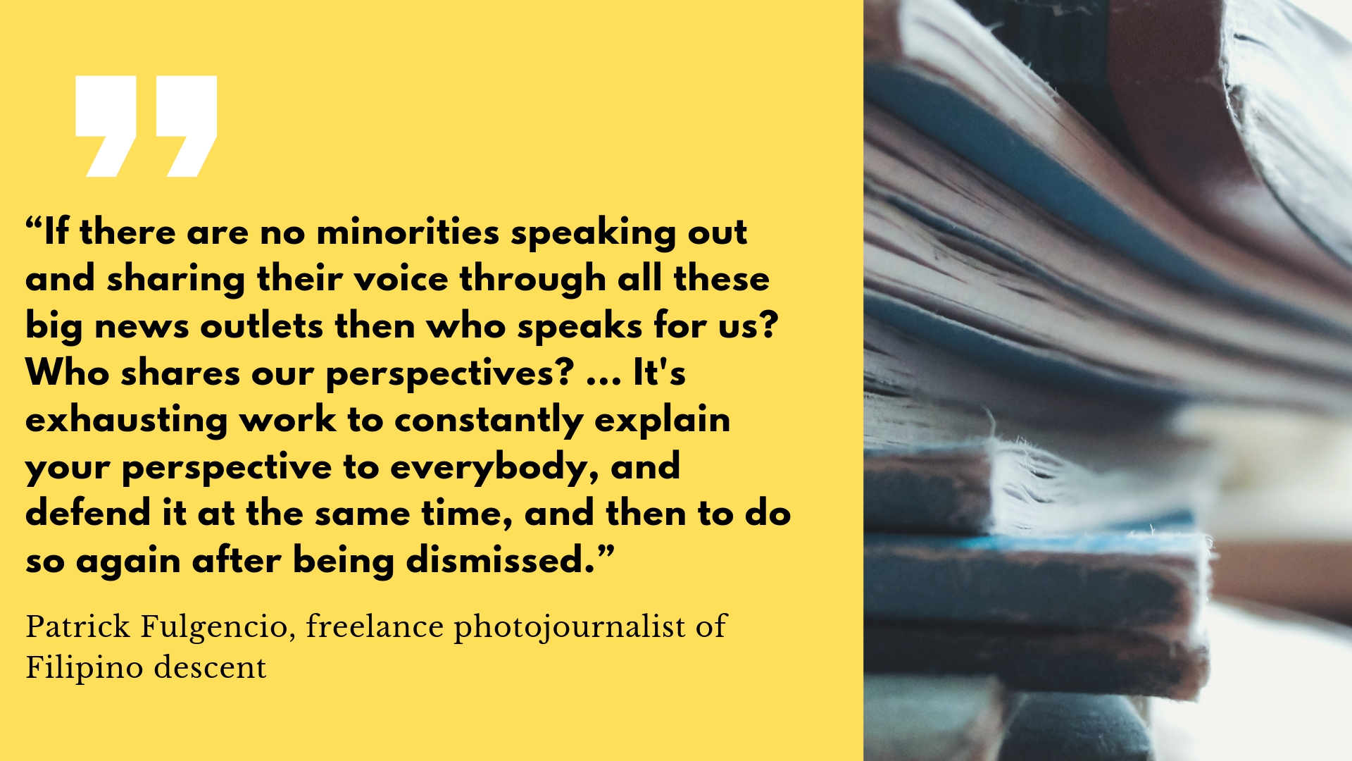 “That puts a lot of responsibility on one person who should have the right to report on whatever issues they want to write on and not have to carry the fight against racism on their backs,” she said.