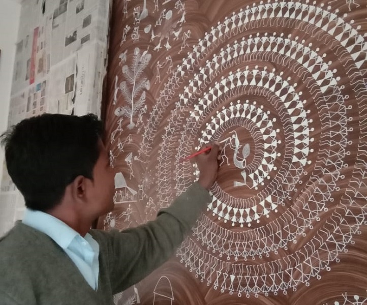 Sanjay Parhad, a Warli artist from Vangaon, was one of those who had made a living selling his traditional paintings and hosting Warli art workshops. As happened with others, his livelihood came to a grinding halt when the pandemic hit.